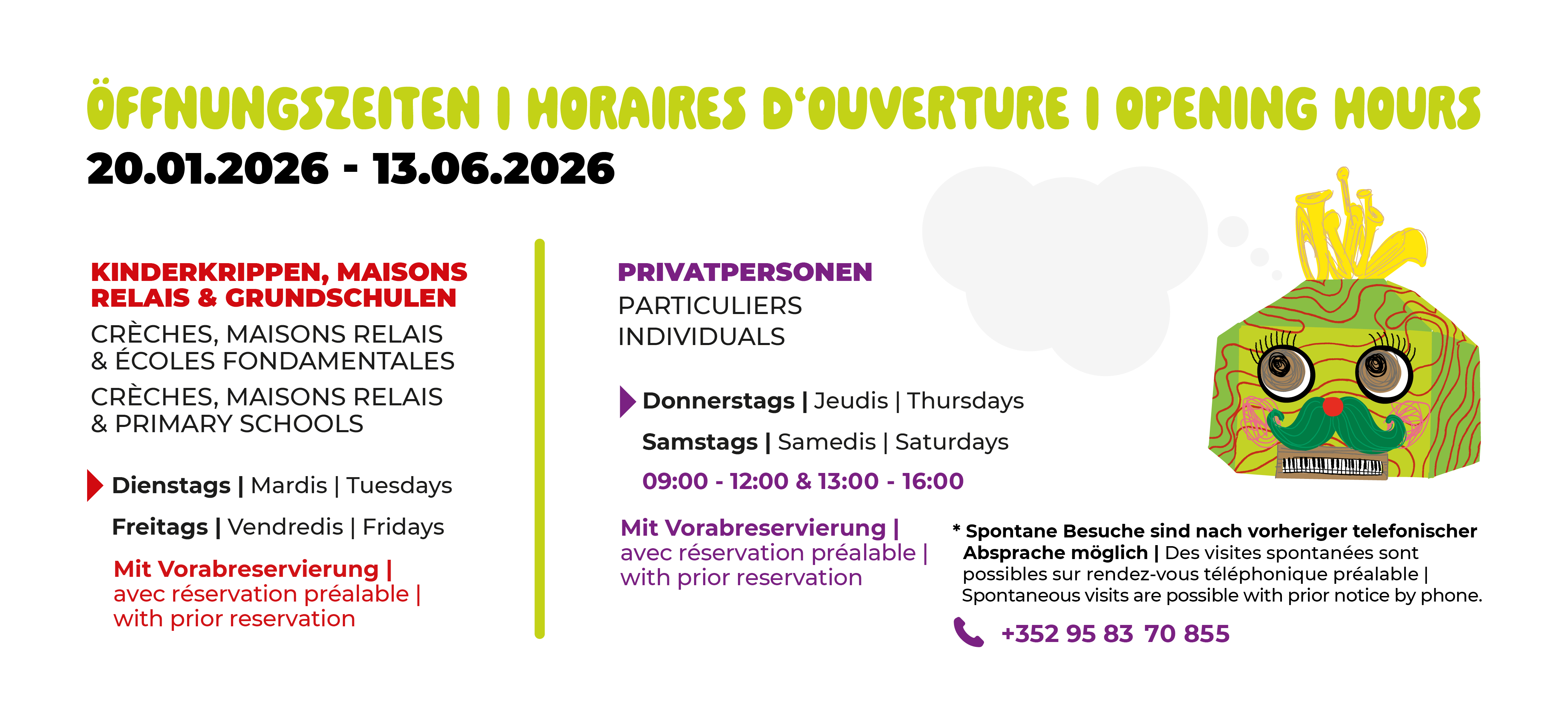 Le musée pour enfants PLOMM propose aux enfants de zéro à douze ans, ainsi qu’à leurs familles et accompagnants, une large gamme d’expositions et d’ateliers. Au PLOMM, tout est pensé autour de la participation : que ce soit dans notre exposition permanente, l’Arbre des histoires, notre exposition temporaire LOVE ou dans nos ateliers créatifs, de nombreuses choses passionnantes sont à découvrir et à essayer un peu partout! Venez nous voir!